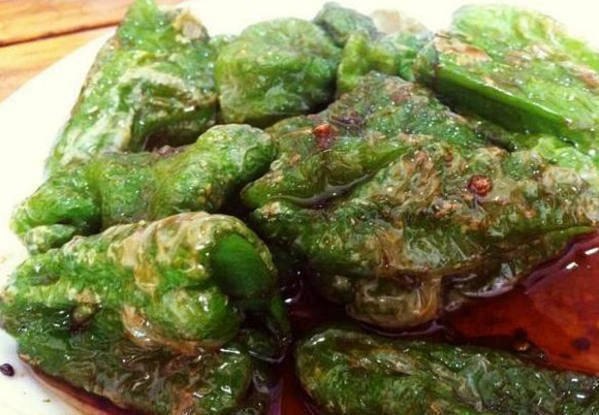 虎皮青椒,又叫虎皮海椒、糖醋辣椒癟子,是以青椒為主要材料制作的一道菜品,因青椒表面炒得略微焦糊,斑駁的焦糊點如同老虎的花紋而得名。只要將洗凈的青椒入鍋,干炒至表皮起皺。加入油后,翻炒至表皮膨脹皺紋劇增即可。原料便宜,做工簡單。成菜后,氣味清香,口感鮮辣,綿而不爛。有疾患者應少食或忌食?!咀钸m合夏天吃的6道菜,尤其適合天熱吃,好吃到流眼淚!】